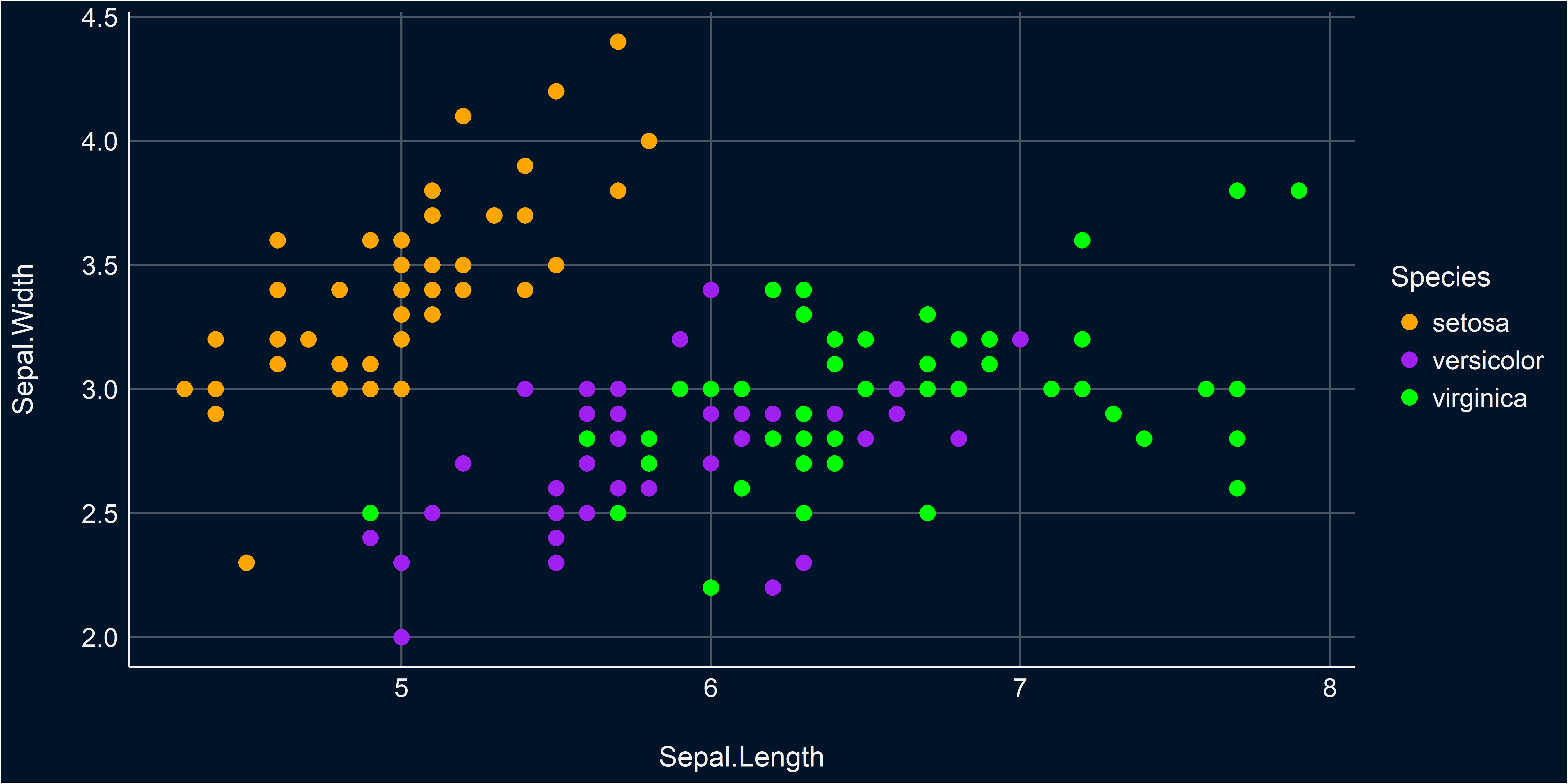 Note: In ggplot (and most tidyverse) packages, variables are not quoted (x=Sepal.Length, not x="Sepal.Length")