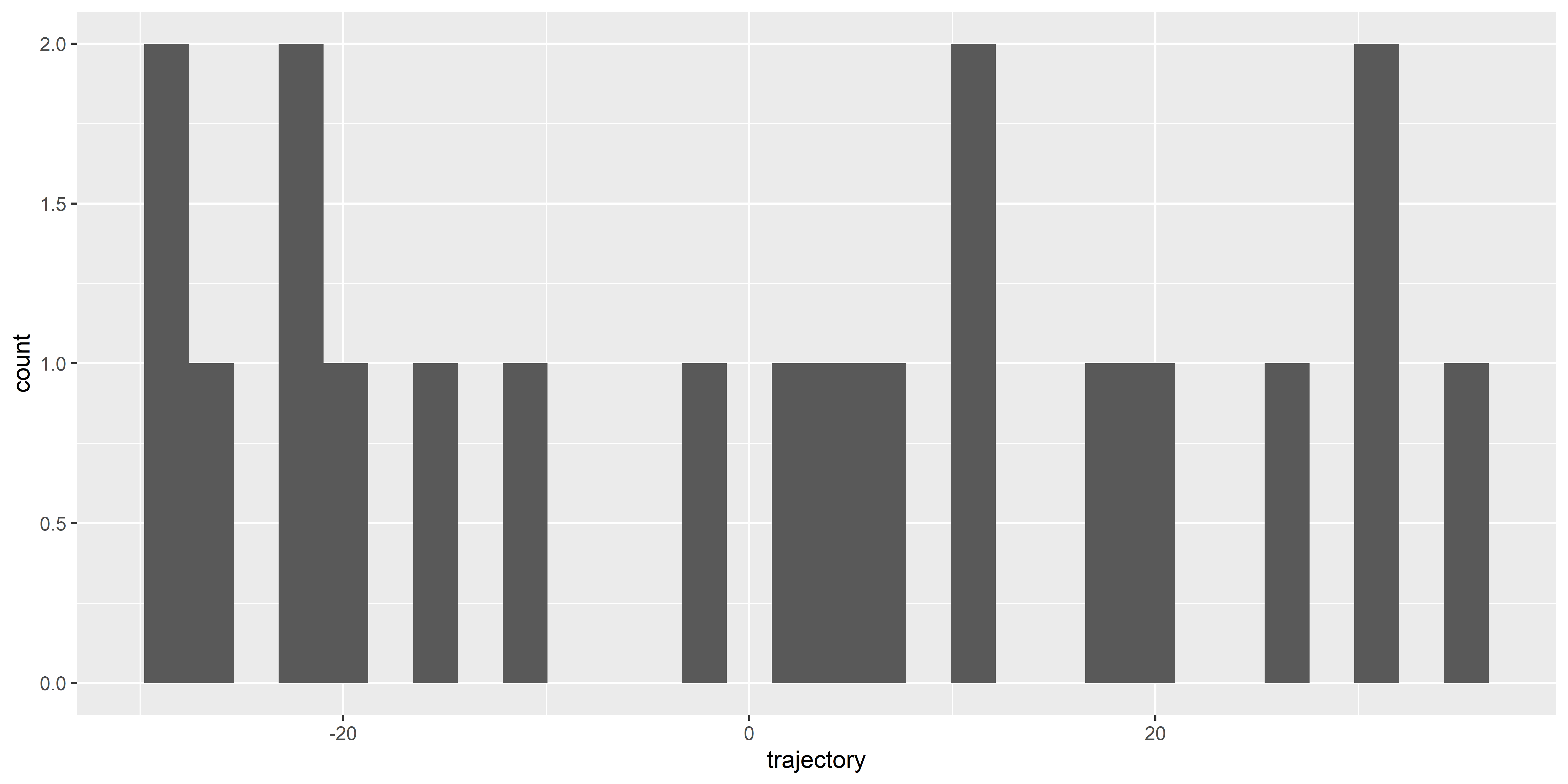 ggplot(data, aes(x=time, y=trajectory)) +geom_line() +coord_flip() # Flip x and y axes