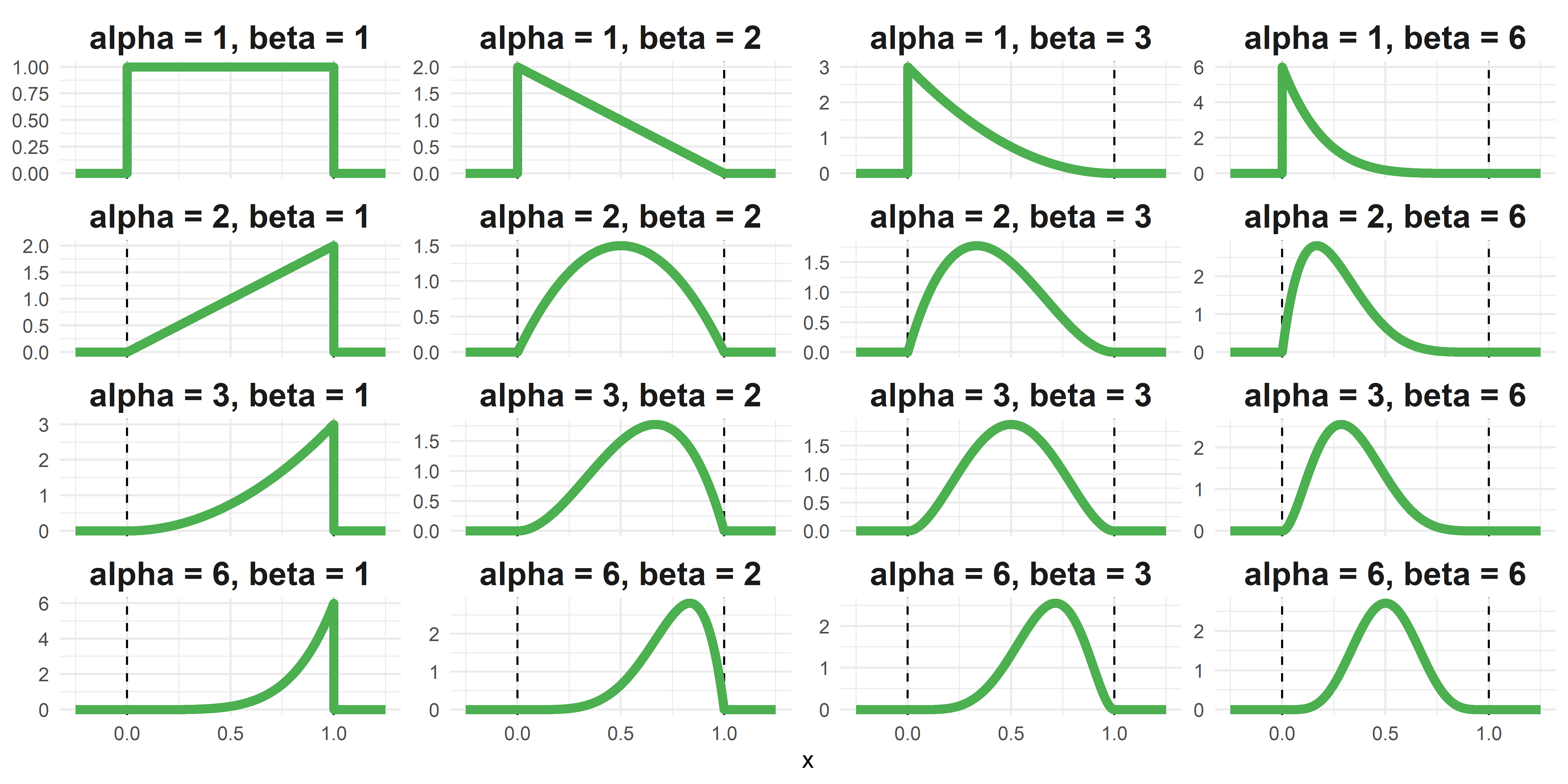 Defined by two shape parameters, α and β (shape1 & shape2)1