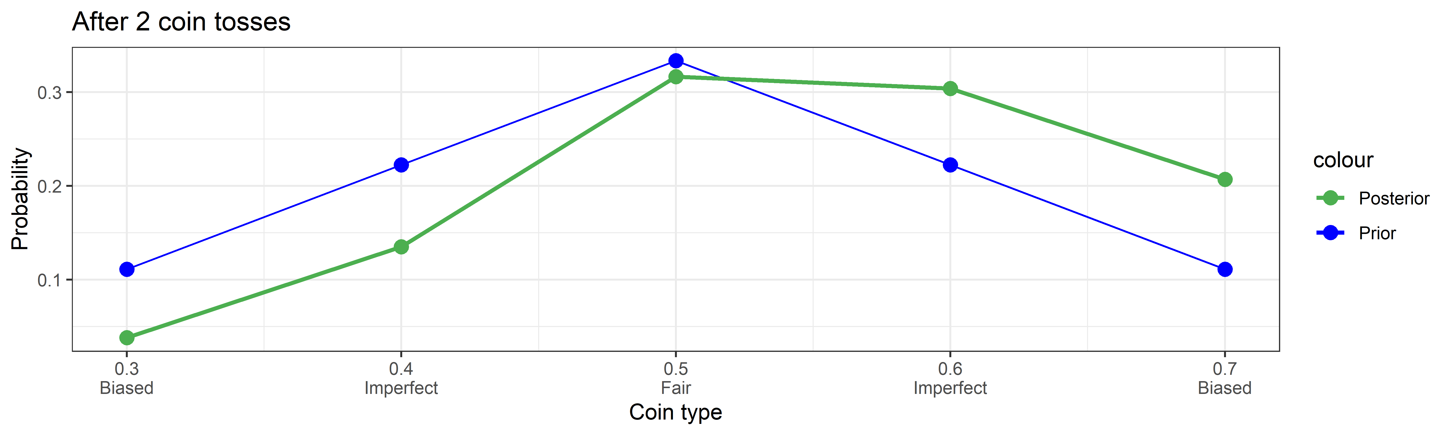 cointypes <- c(0.3, 0.4, 0.5, 0.6, 0.7) # Probability of heads4. On Bayes’ Theorem