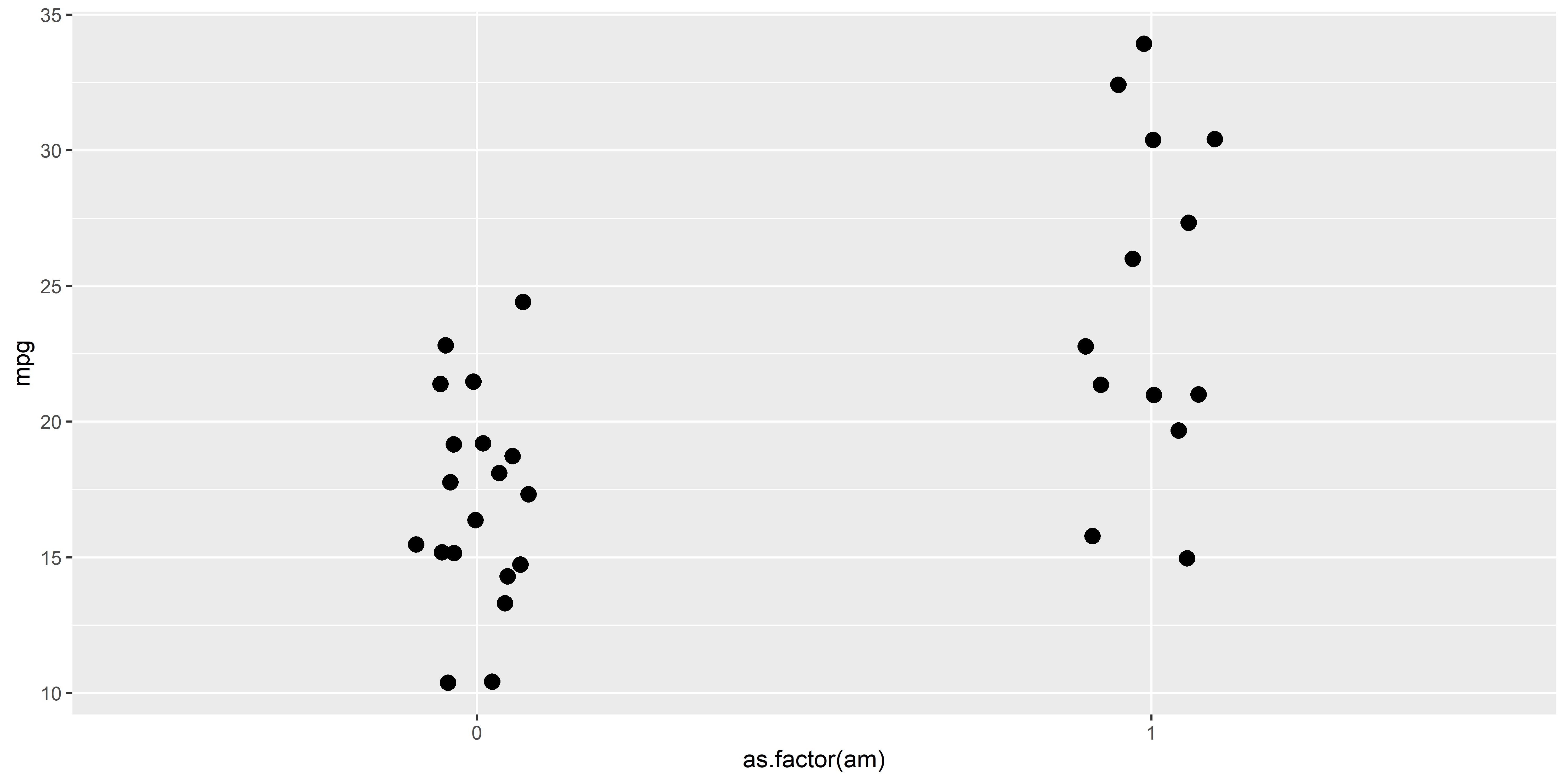 data: mtcars$mpg by mtcars$am
