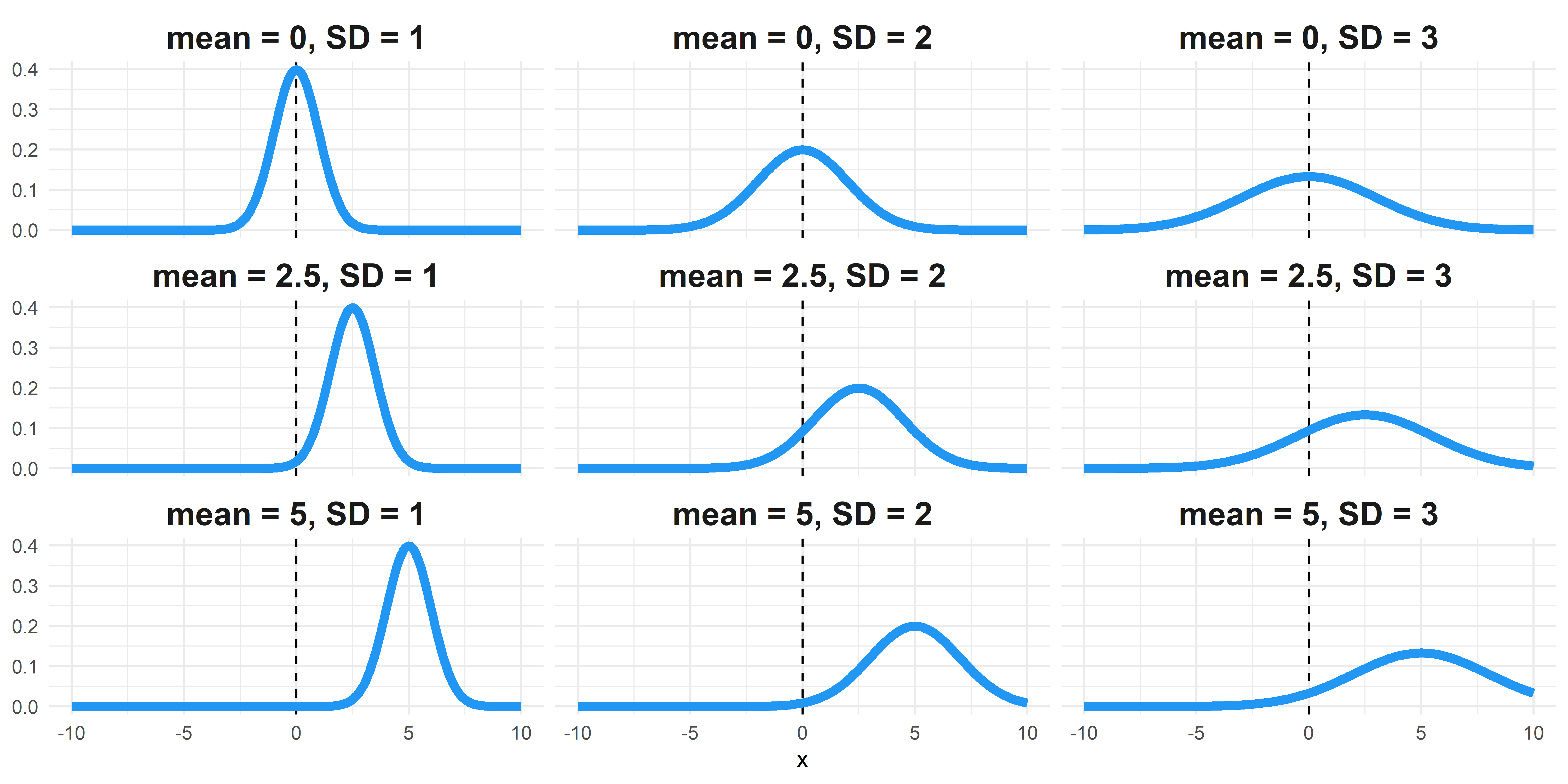 A Normal distribution with \(\mu = 0\) and \(\sigma = 1\) is also called a z-Distribution (aka a Standard Normal Distribution)