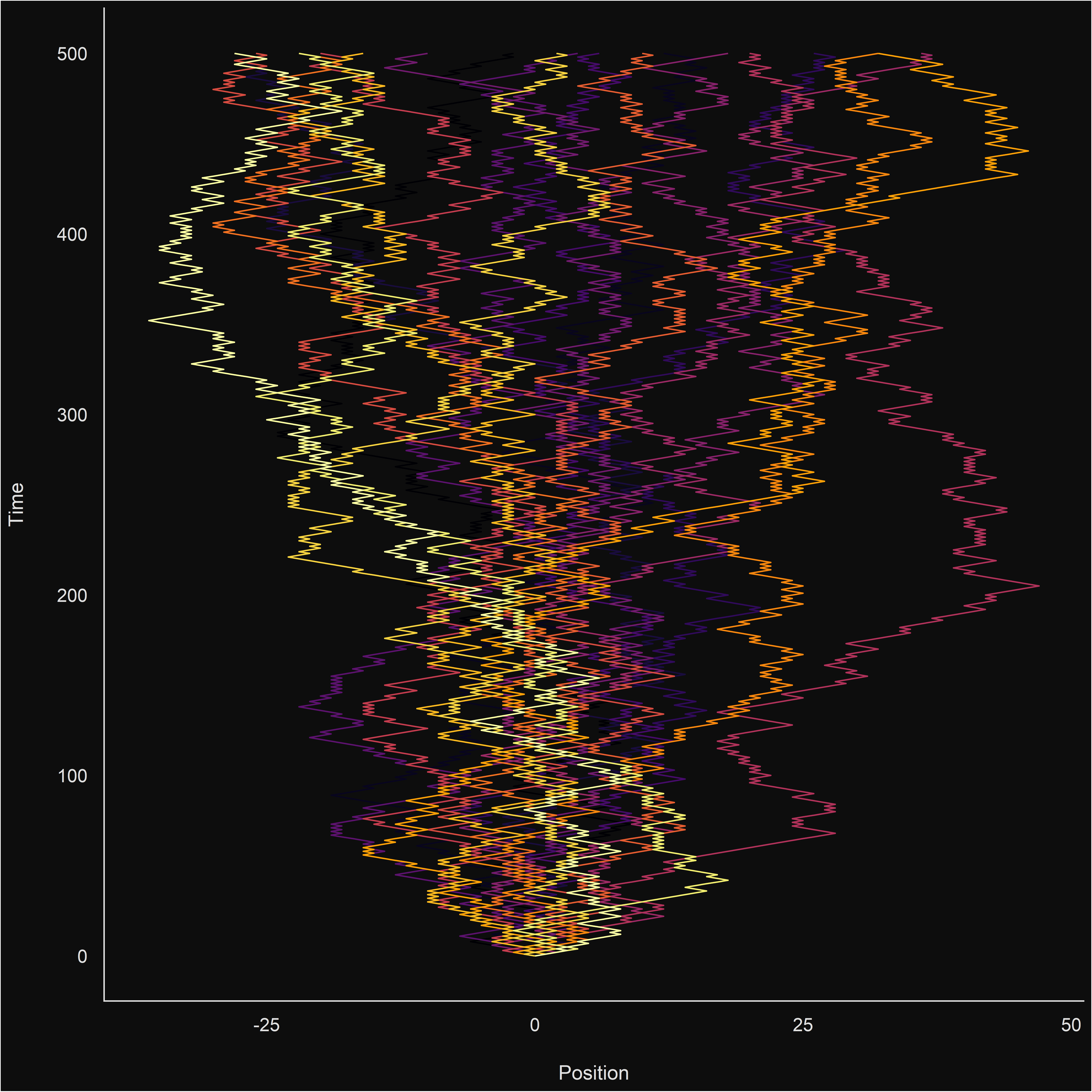 labs(y = "Position", x = "Time", title = "N random walks: {frame}") +