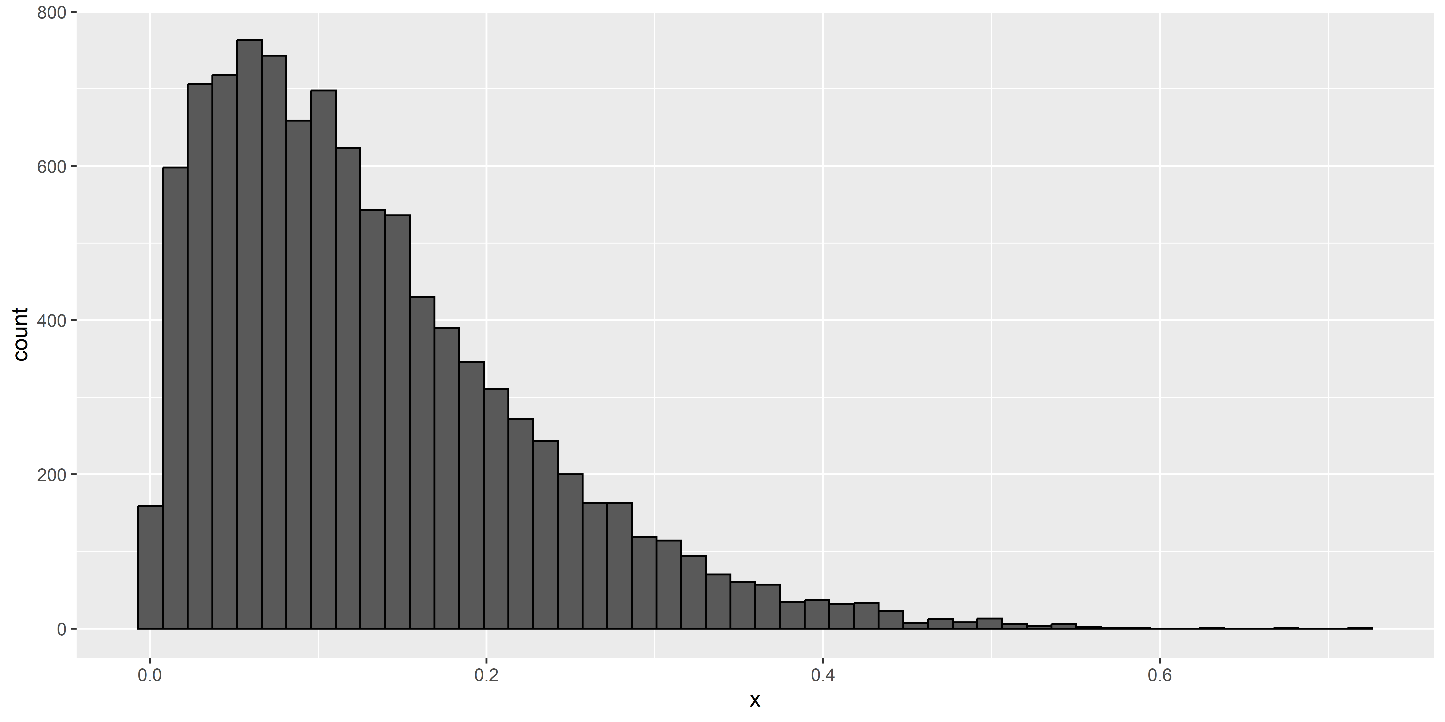 dat$p <- dbeta(dat$x, shape1 = shape1, shape2 = shape2)