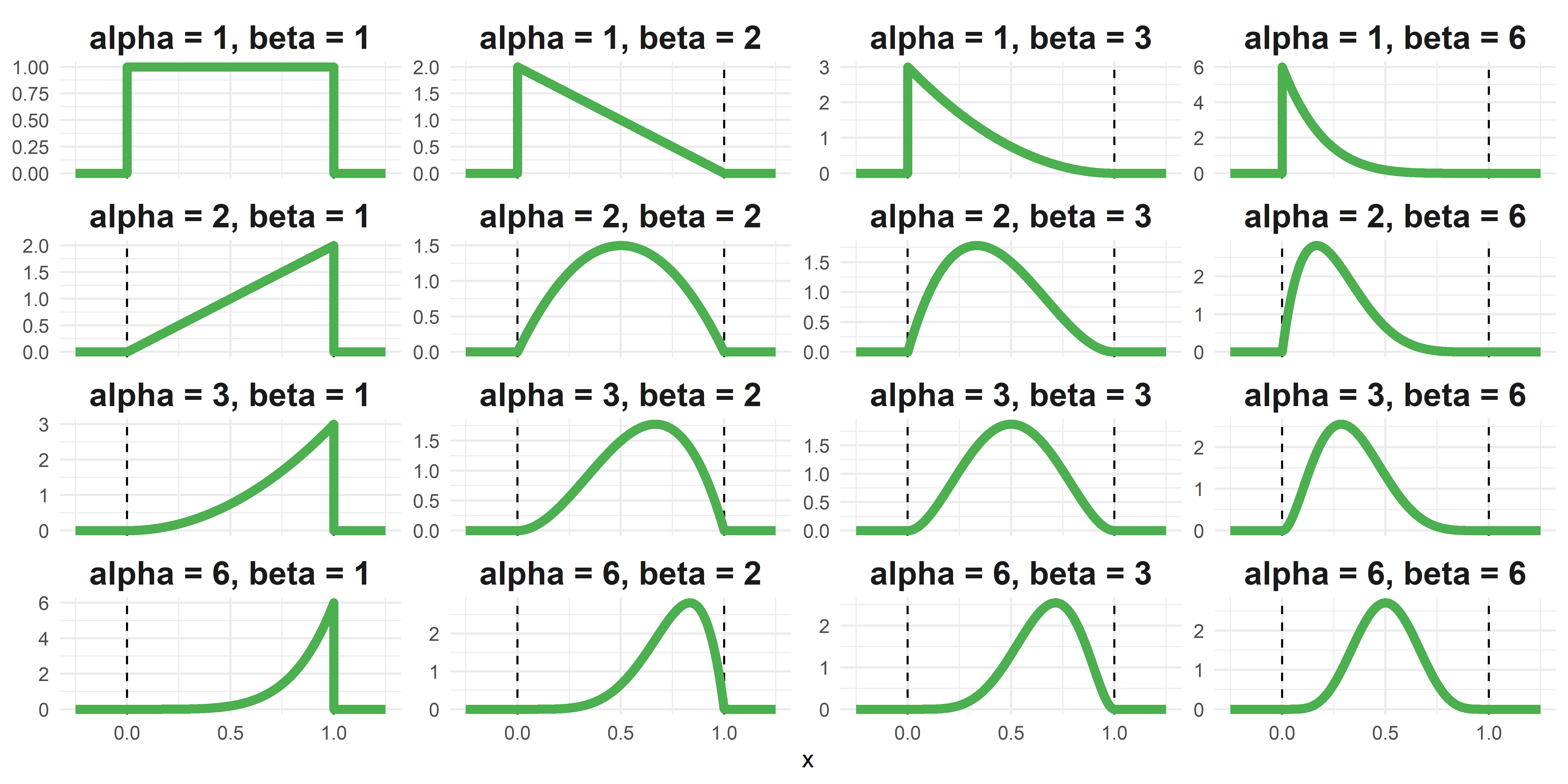 dat$parameters <- paste0("alpha = ", shape1, ", beta = ", shape2)