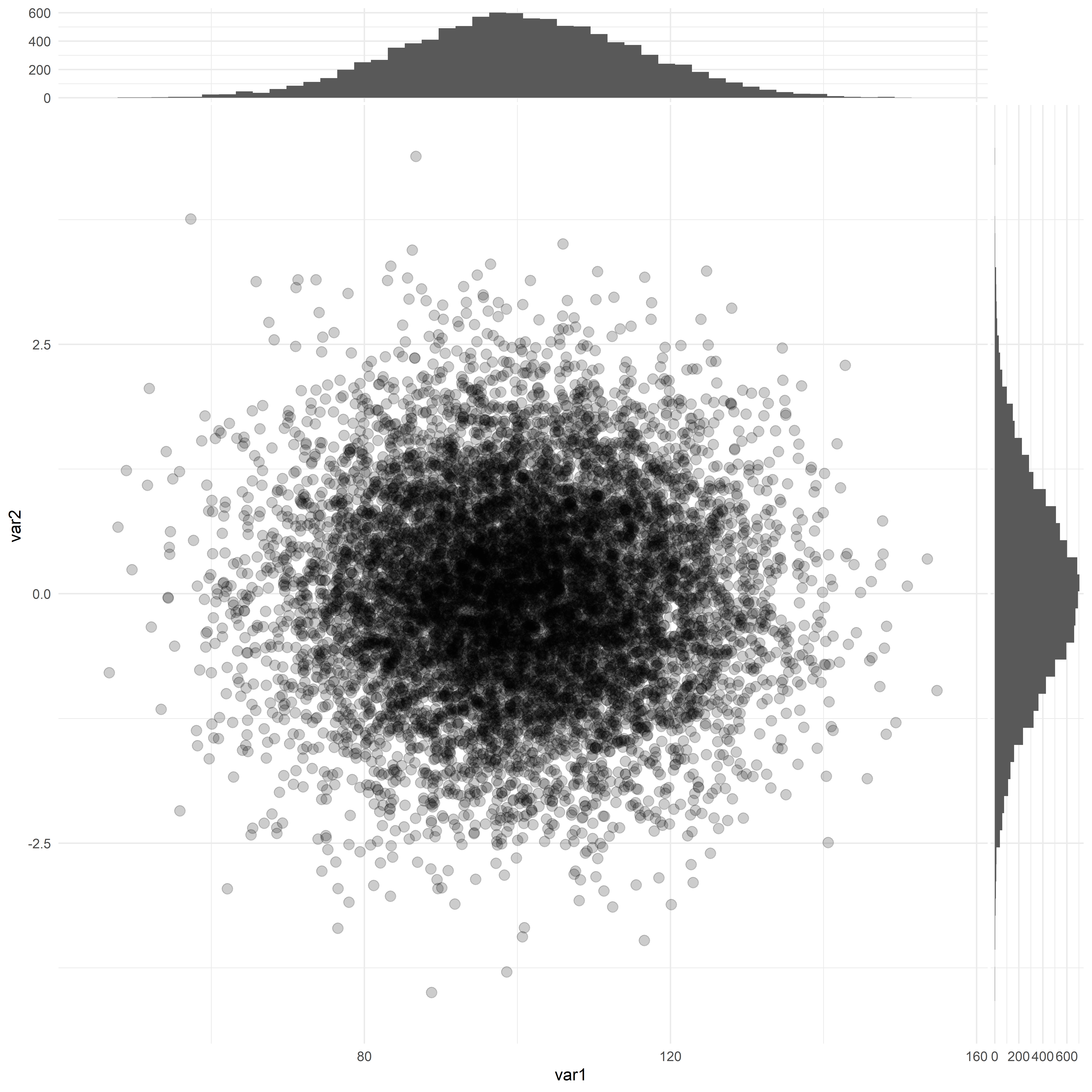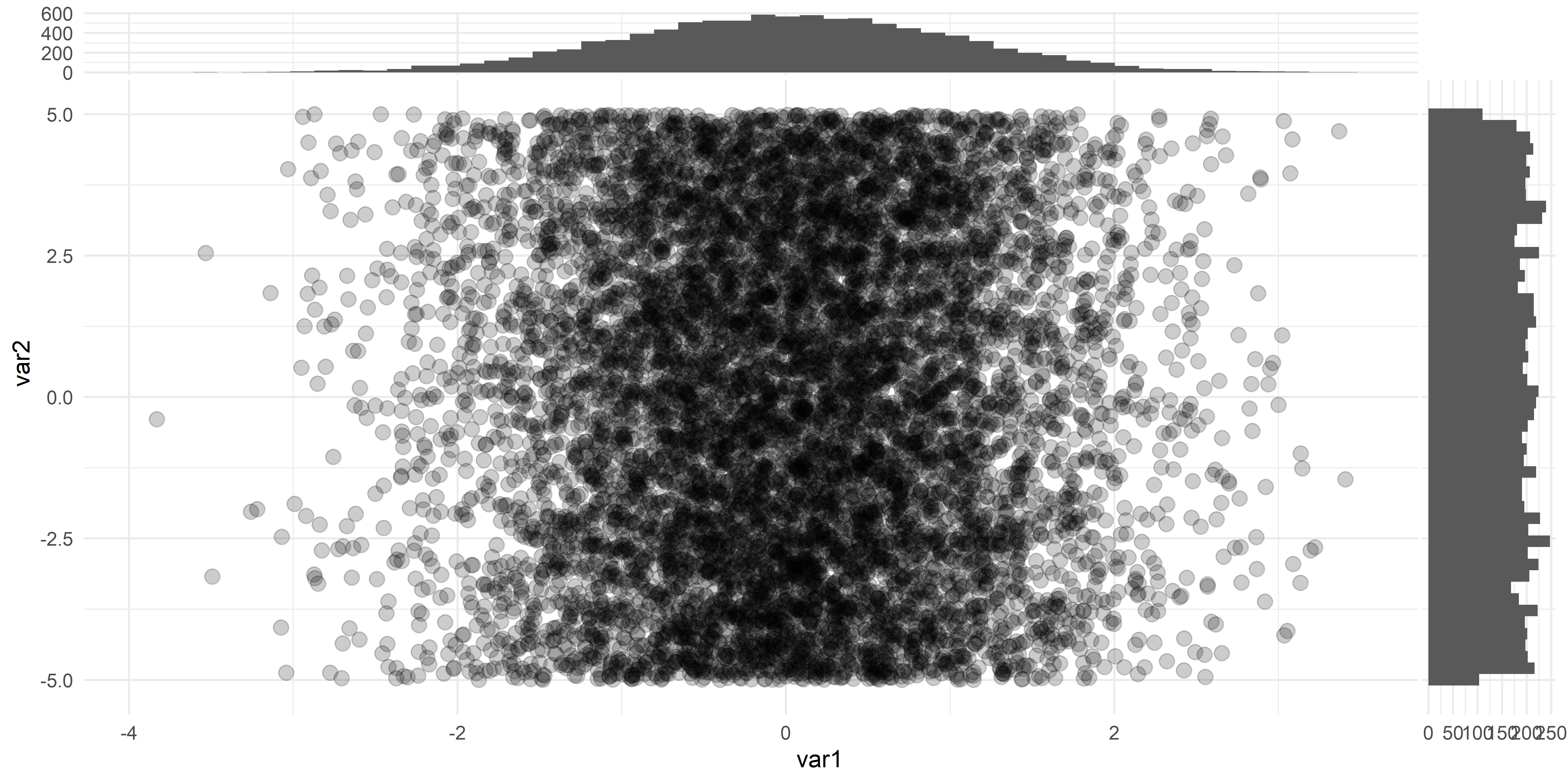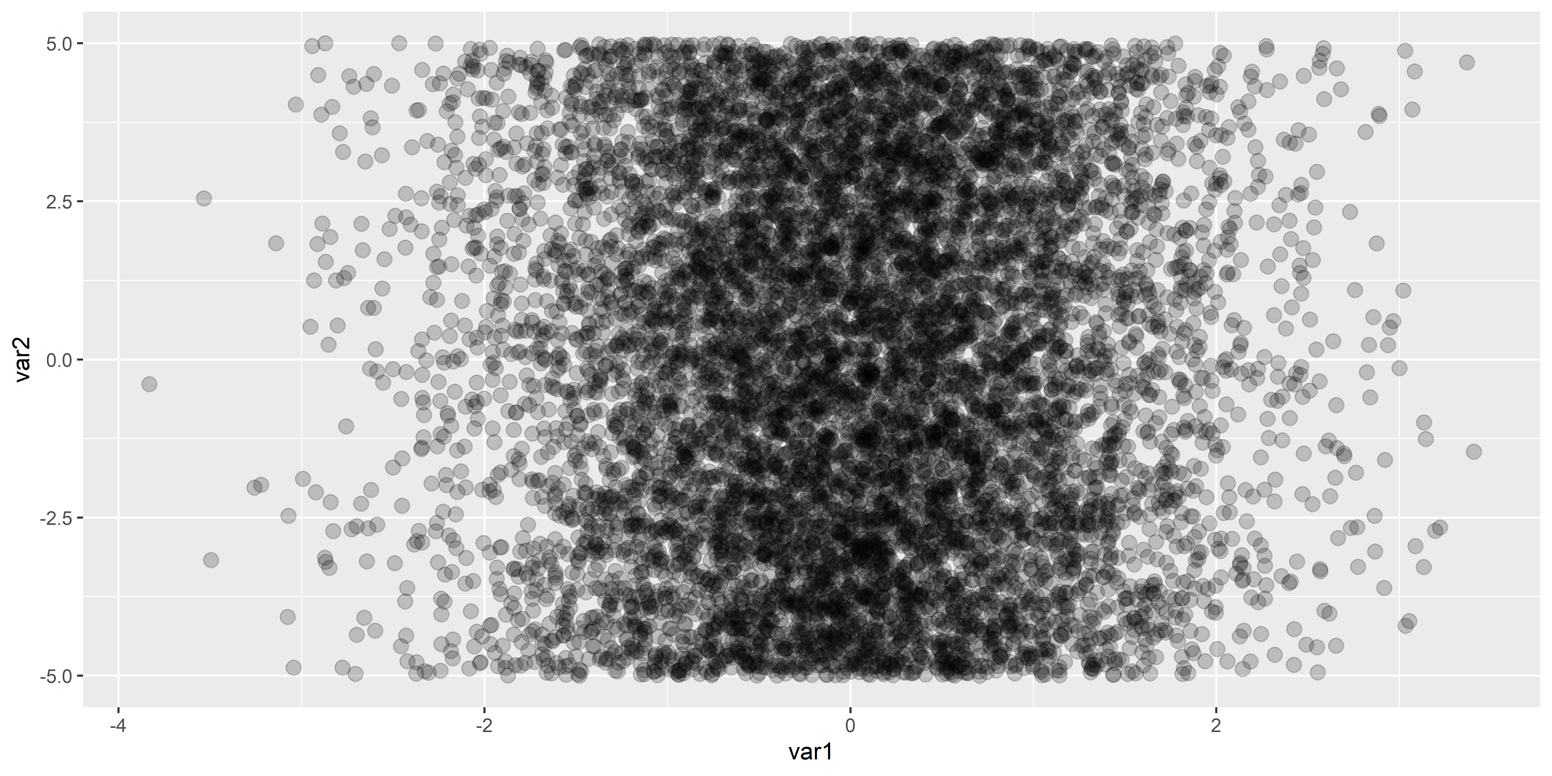 r*() functions are used to draw random samples from distributionsrnorm() = random + normalx <- rnorm(100000, mean = 0, sd = 1)