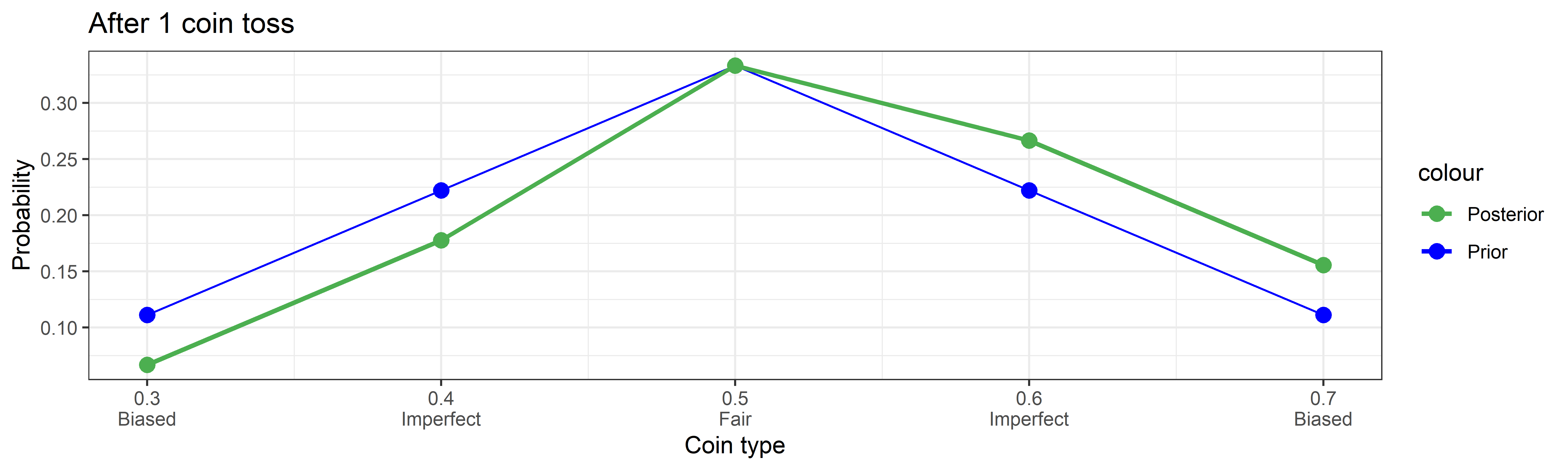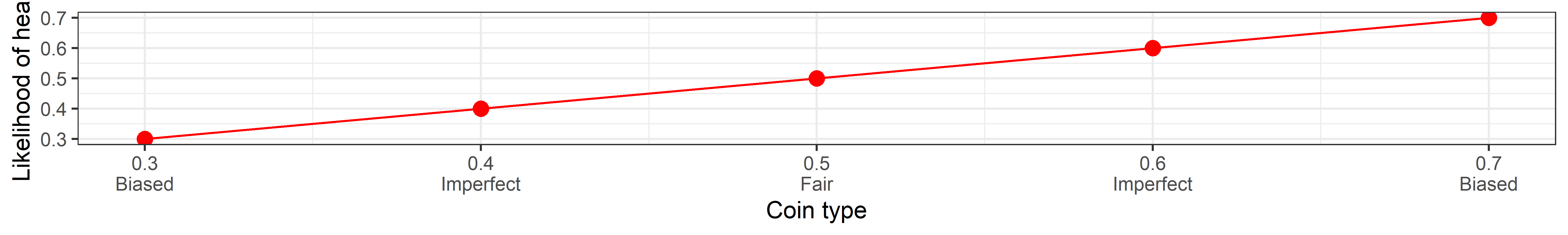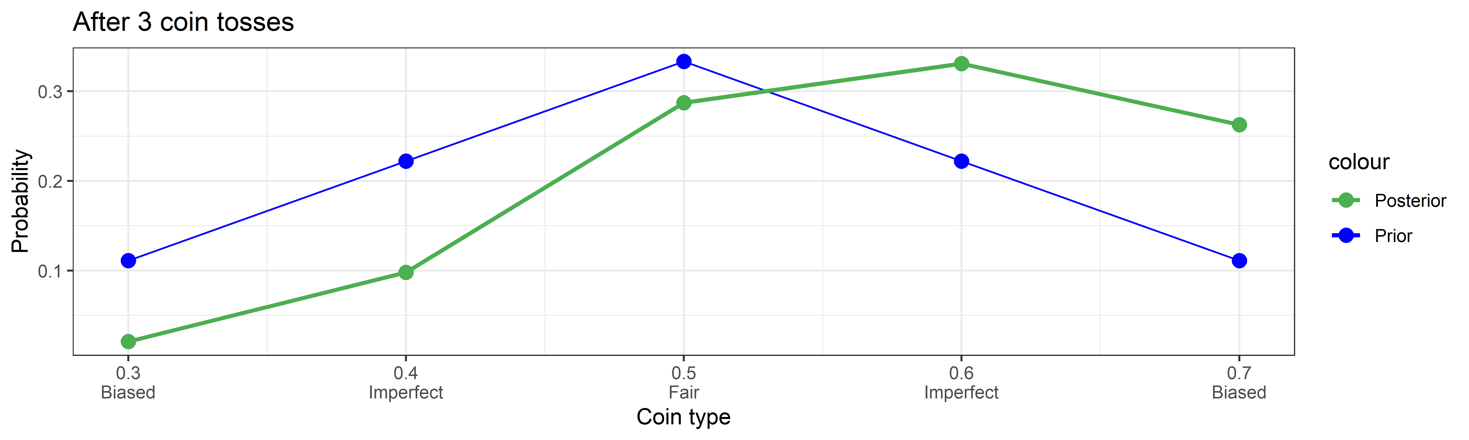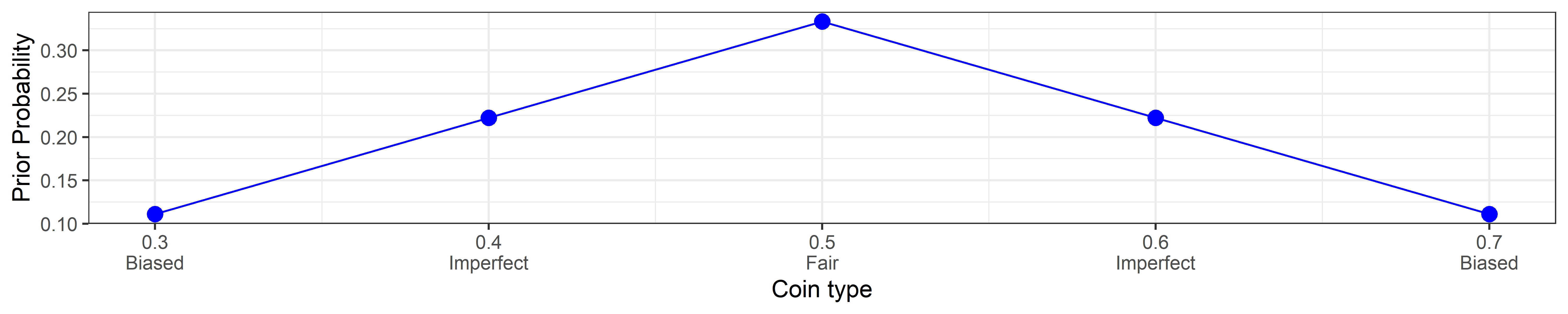 cointypes <- c(0.3, 0.4, 0.5, 0.6, 0.7) # Probability of heads4. On Bayes’ Theorem
