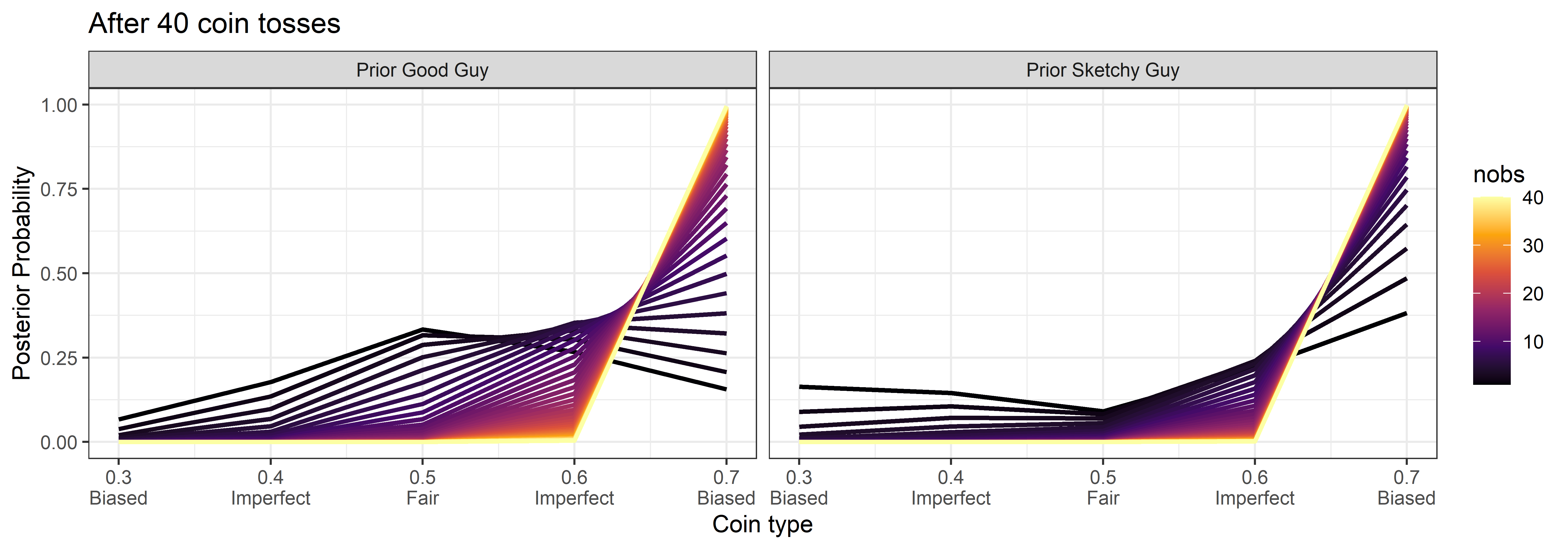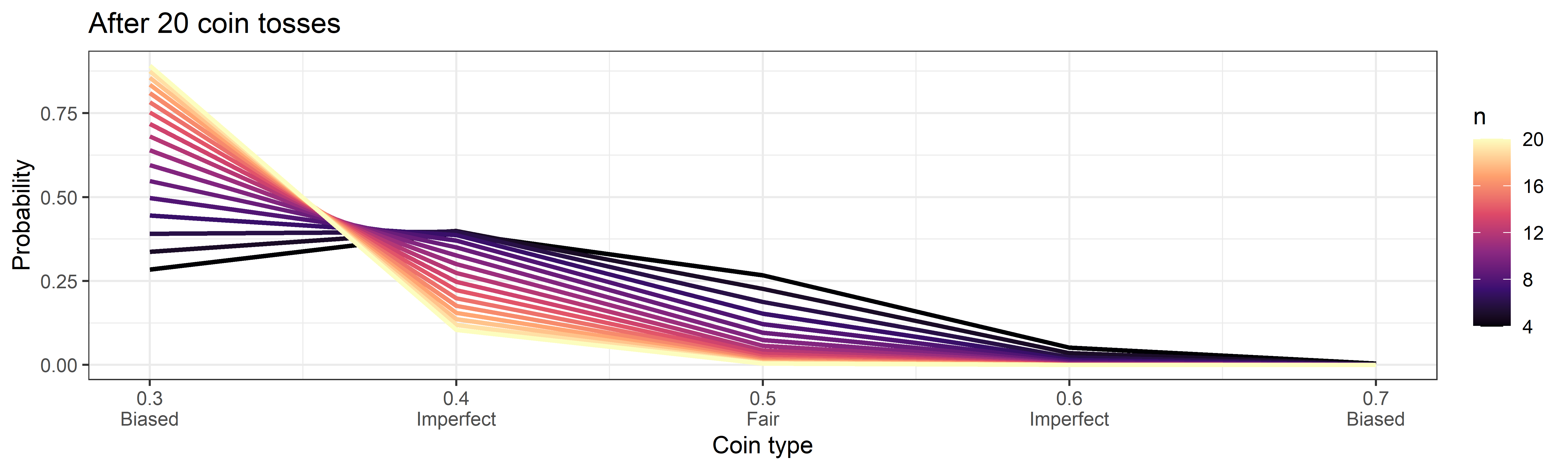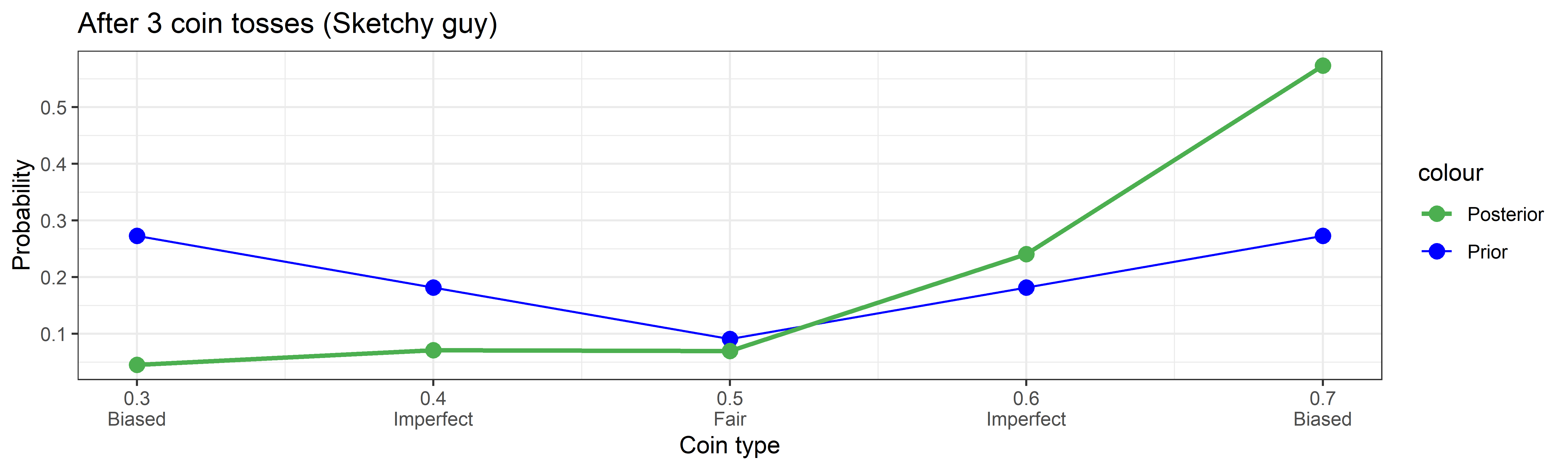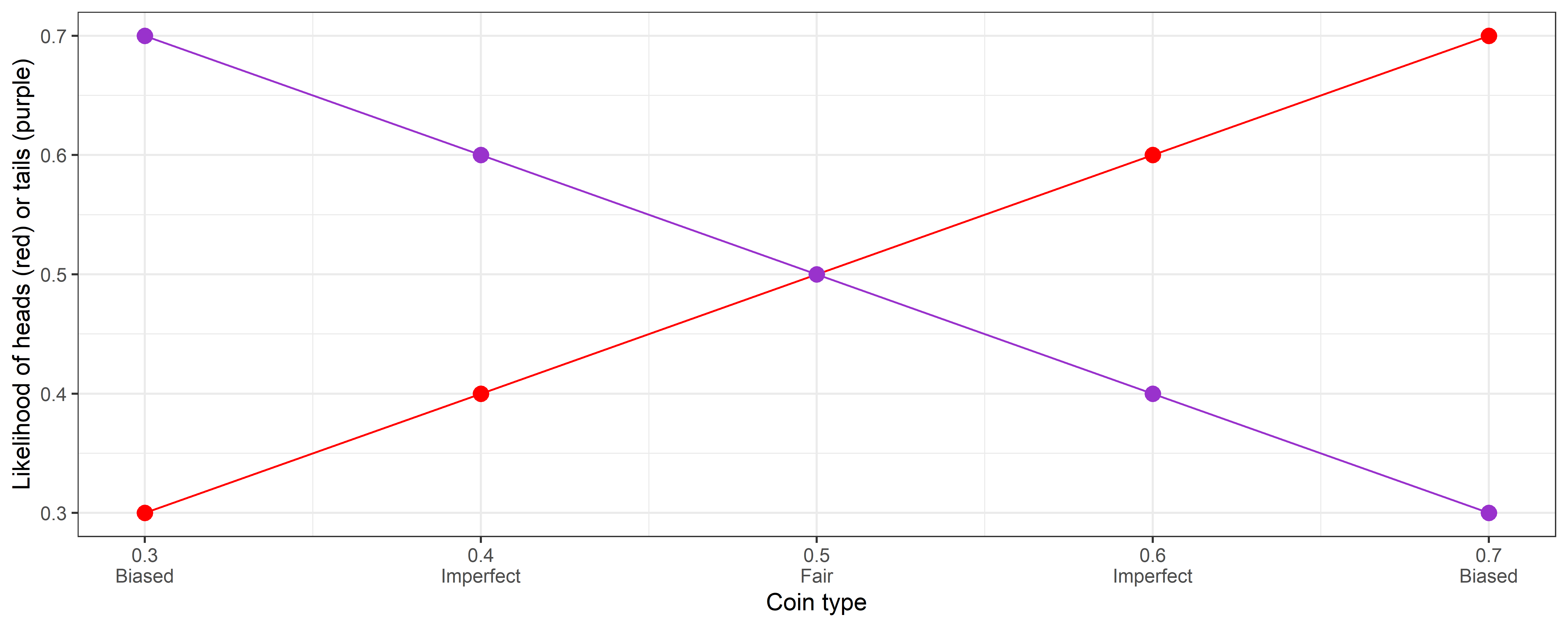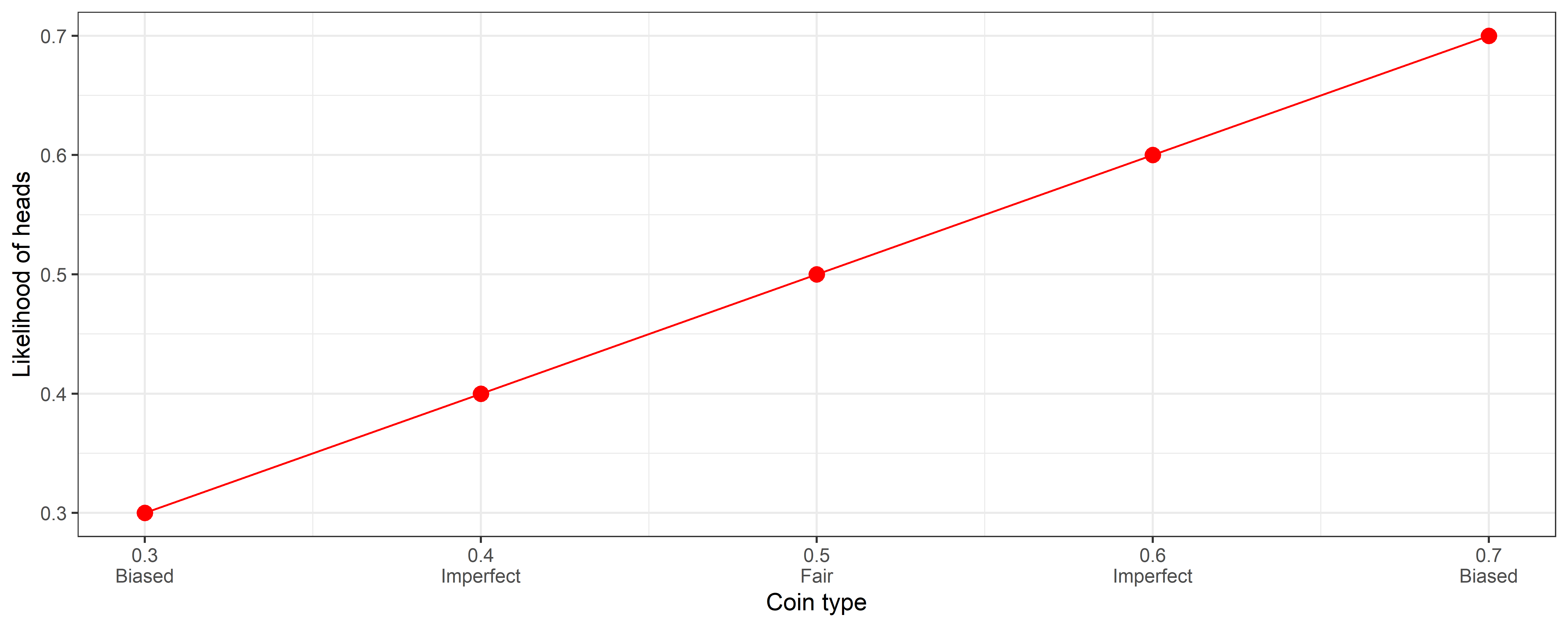 cointypes <- c(0.3, 0.4, 0.5, 0.6, 0.7) # Probability of heads4. On Bayes’ Theorem