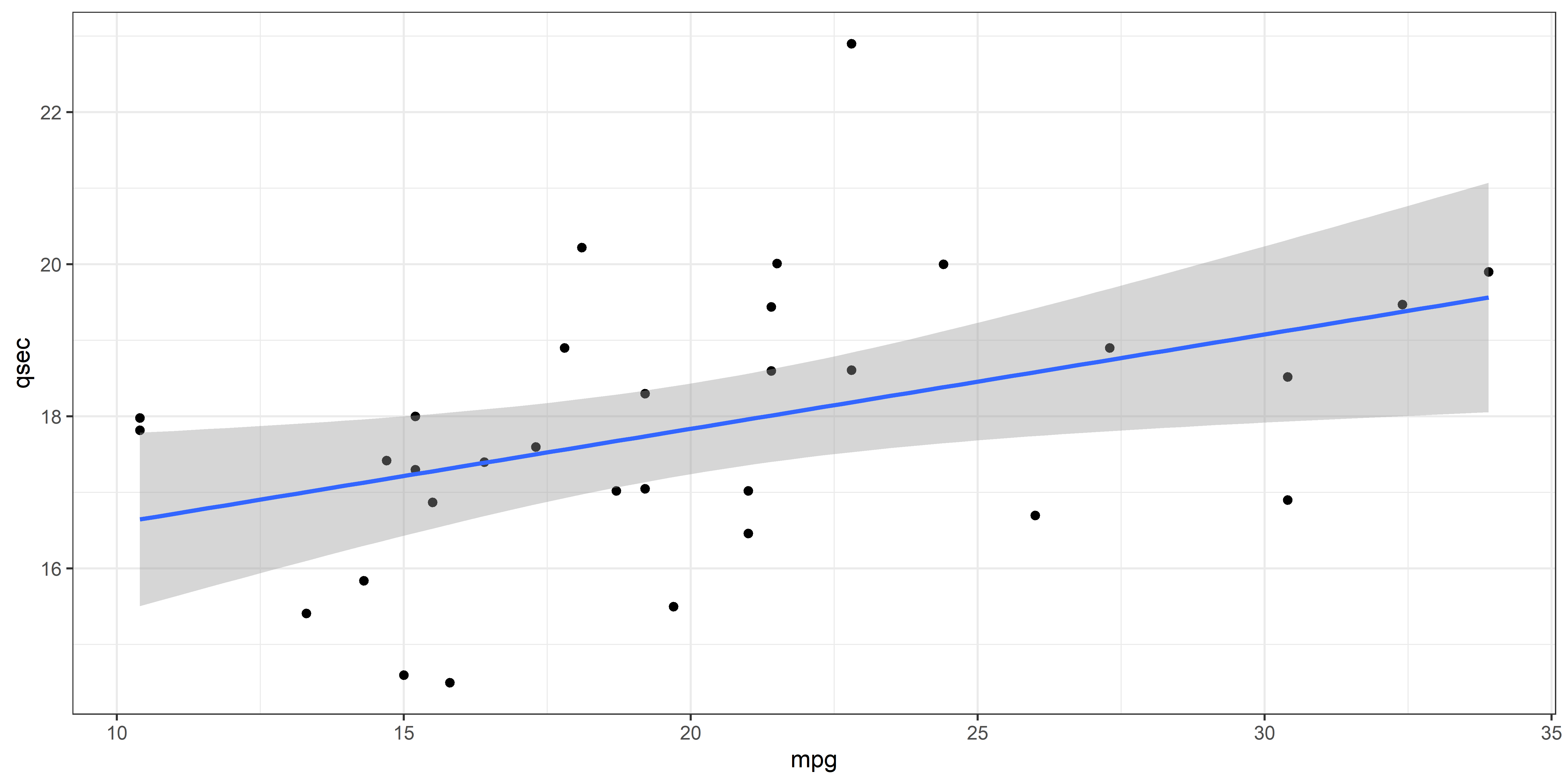 lm(formula = qsec ~ mpg, data = mtcars)