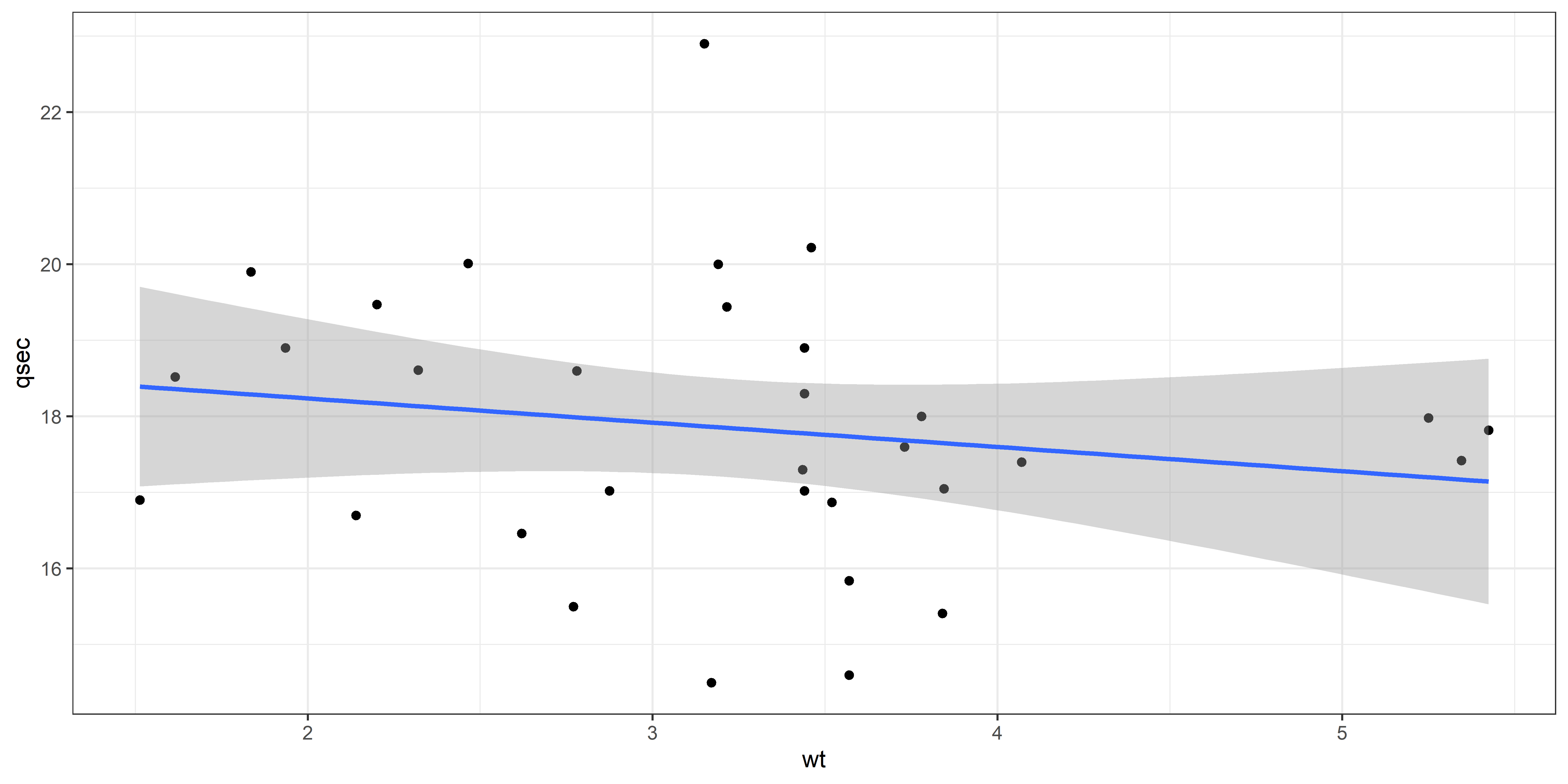 lm(formula = qsec ~ mpg + wt, data = mtcars)